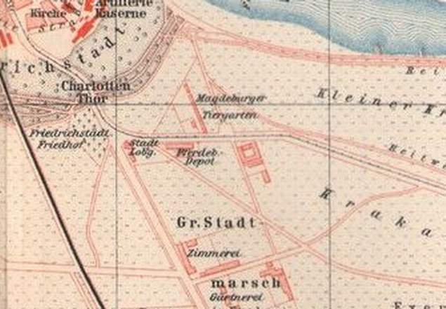 Cracauer Anger, Radrennbahn an der Berliner Chaussee, ab 1912 Viktoria-Sportplatz Gübser Damm |